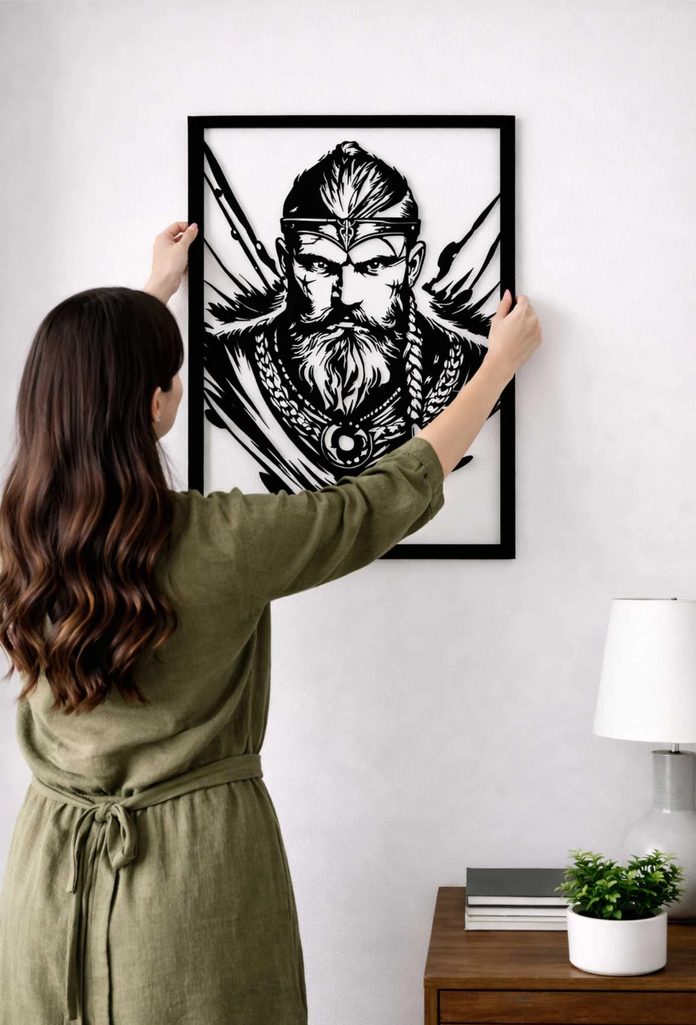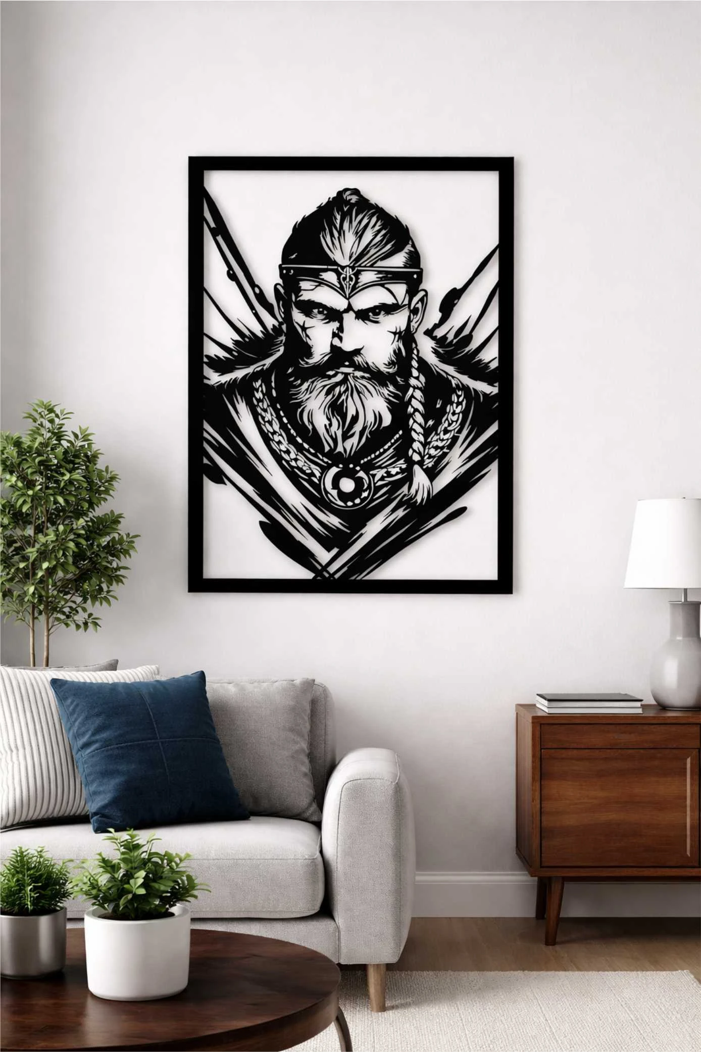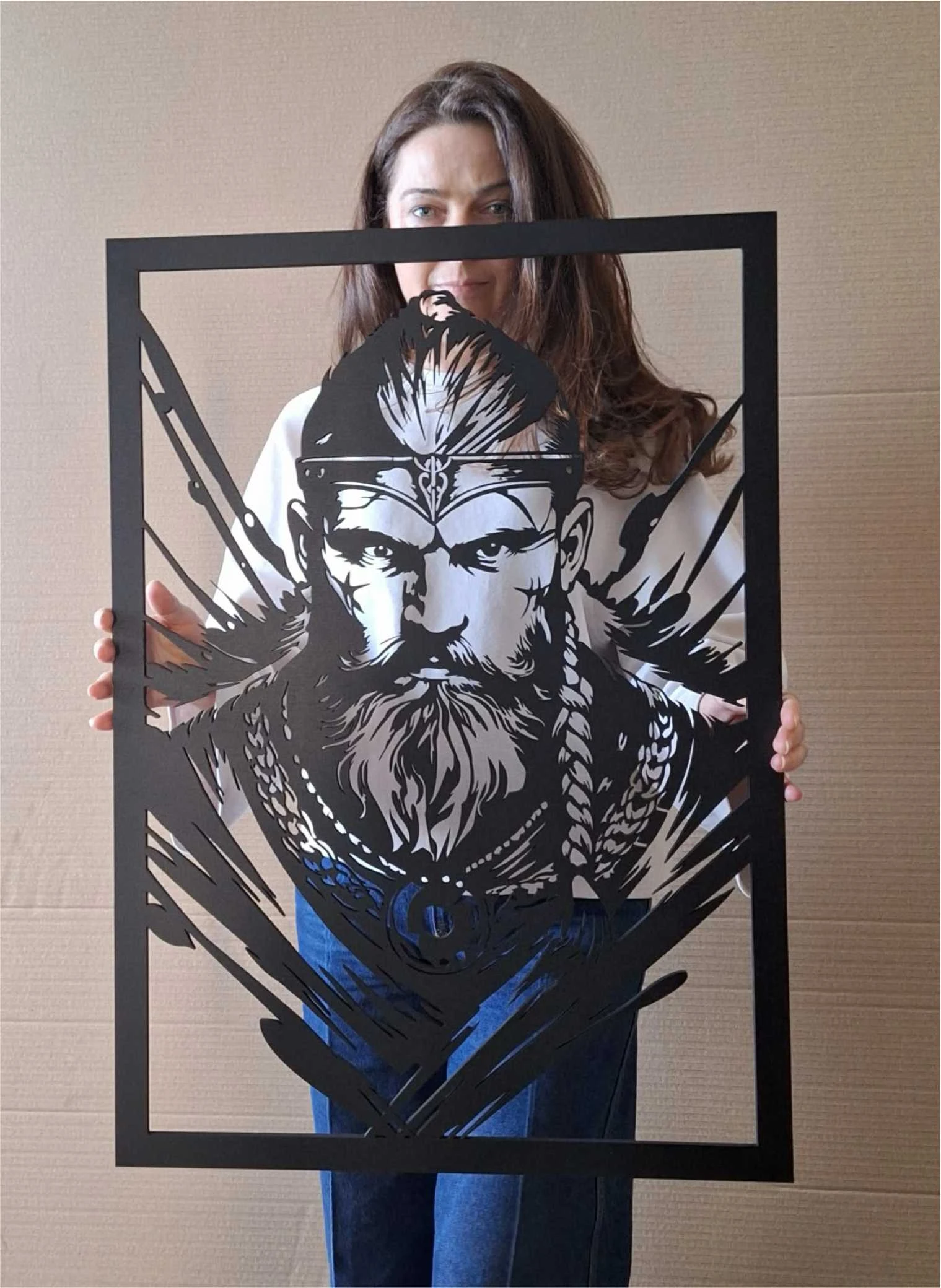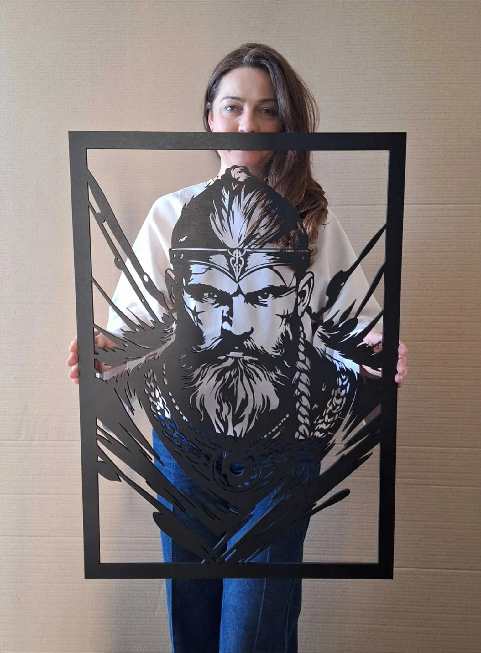 Wprowadź do swojego wnętrza ducha północy i surową elegancję dzięki naszemu autorskiemu panelowi ściennemu. Ta wyjątkowa dekoracja, przedstawiająca portret dumnego wojownika, to idealne połączenie nowoczesnej technologii cięcia laserowego z artystyczną wizją Pracowni Dekoracji Details.