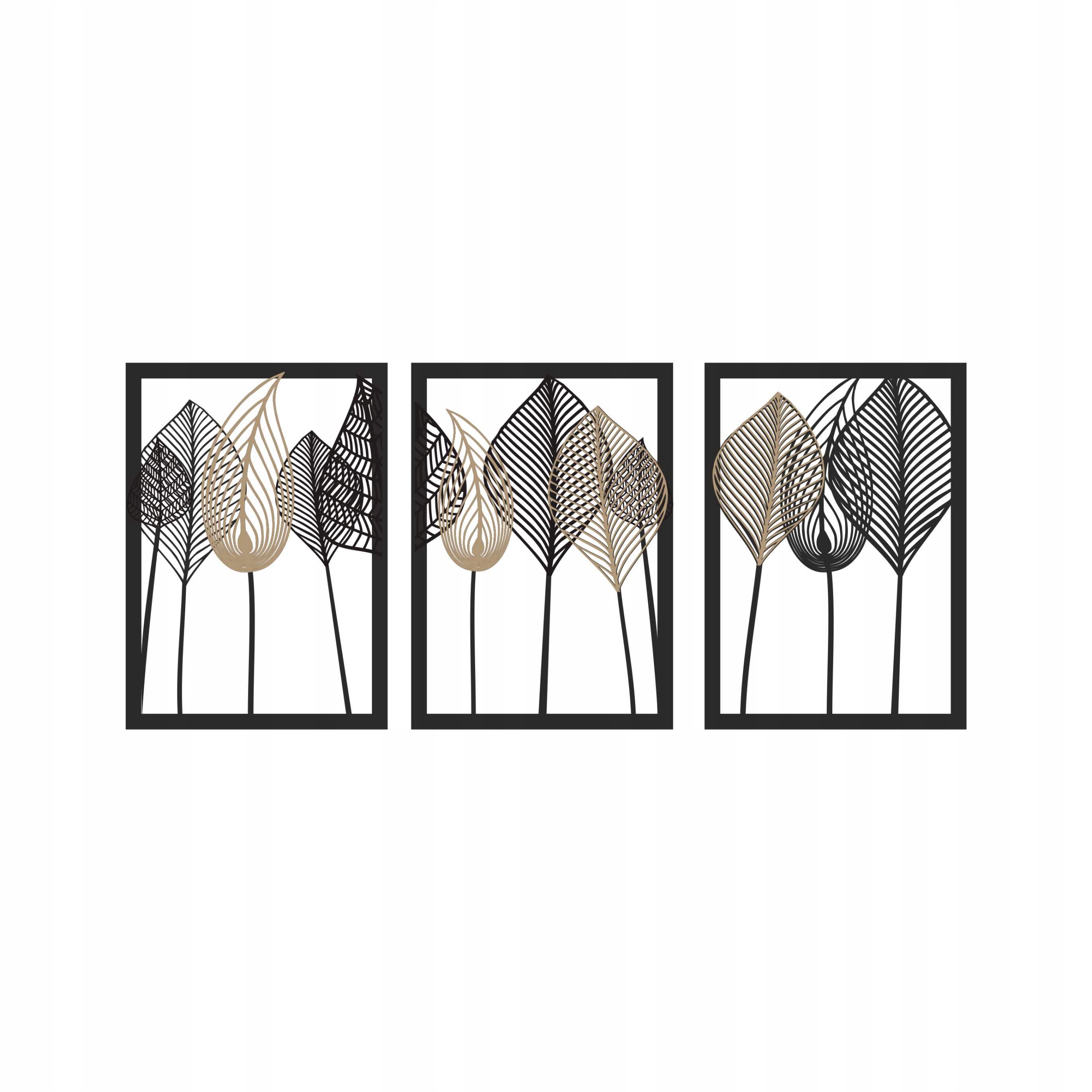 Ażurowy Tryptyk 3D „Liście na łodygach” – Ekskluzywna Dekoracja Ścienna (160x70 cm)